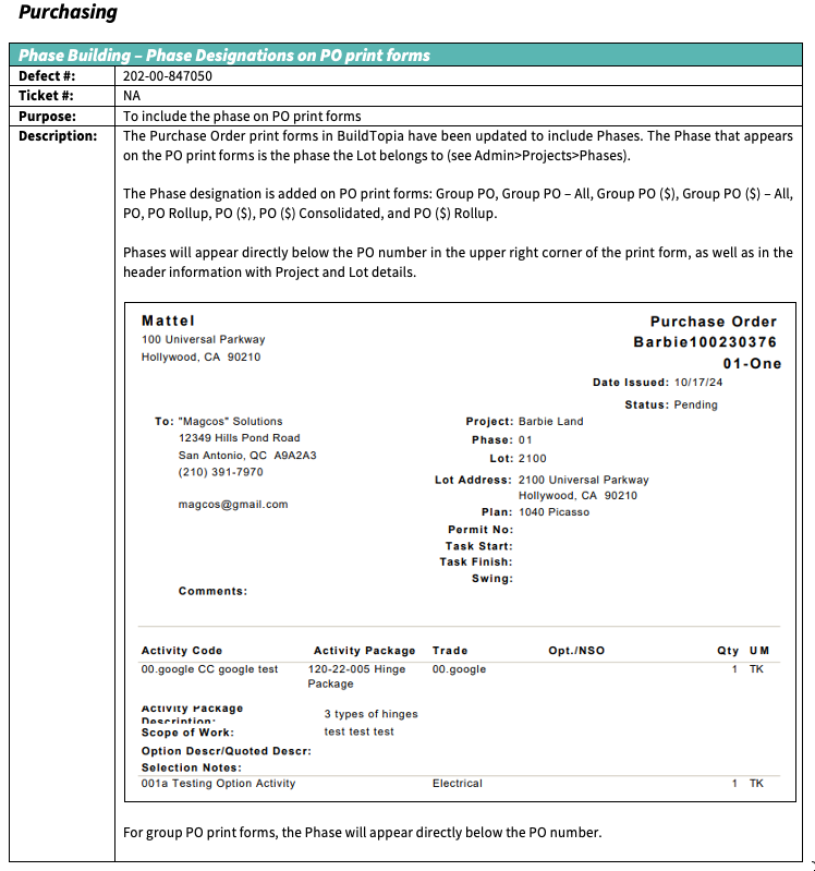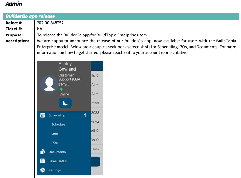 This section highlights new features and enhancements that have been added to BuildTopia. Each item is identified by a ticket and/or defect number (where applicable) which tracks to our internal support and software development system. Each item has a description and relevant screenshots to detail the enhancement.